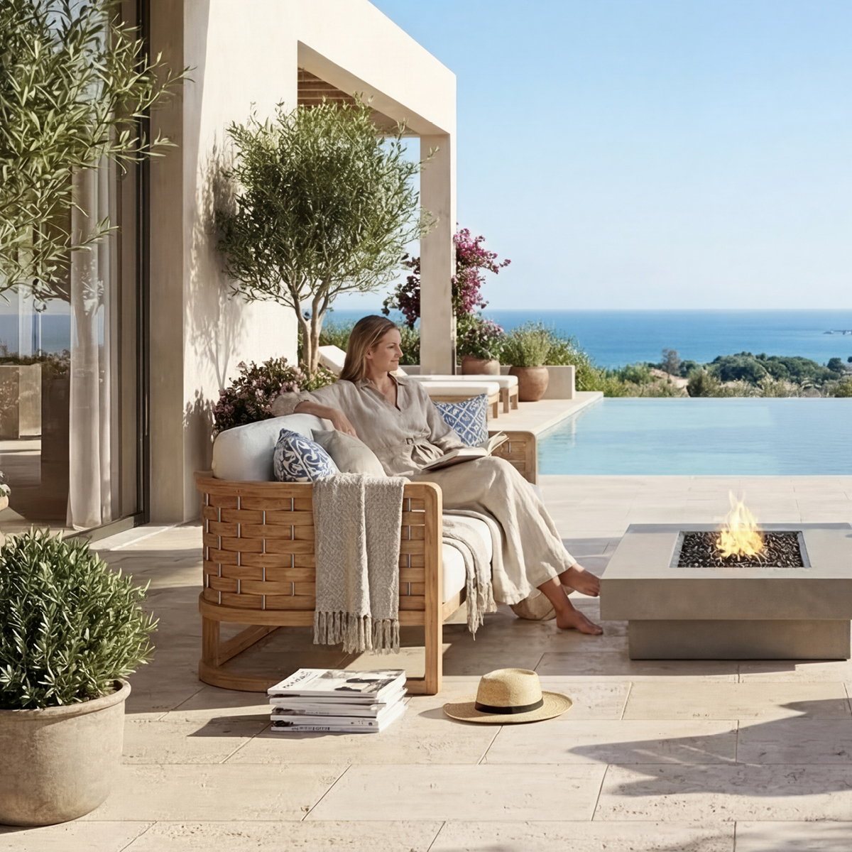 Summit furniture is crafted from plantation-grown teak, a uniquely durable hardwood rich in natural oils and silicates. These natural compounds give teak exceptional resistance to moisture, rot, and insects, making it ideal for outdoor environments.
