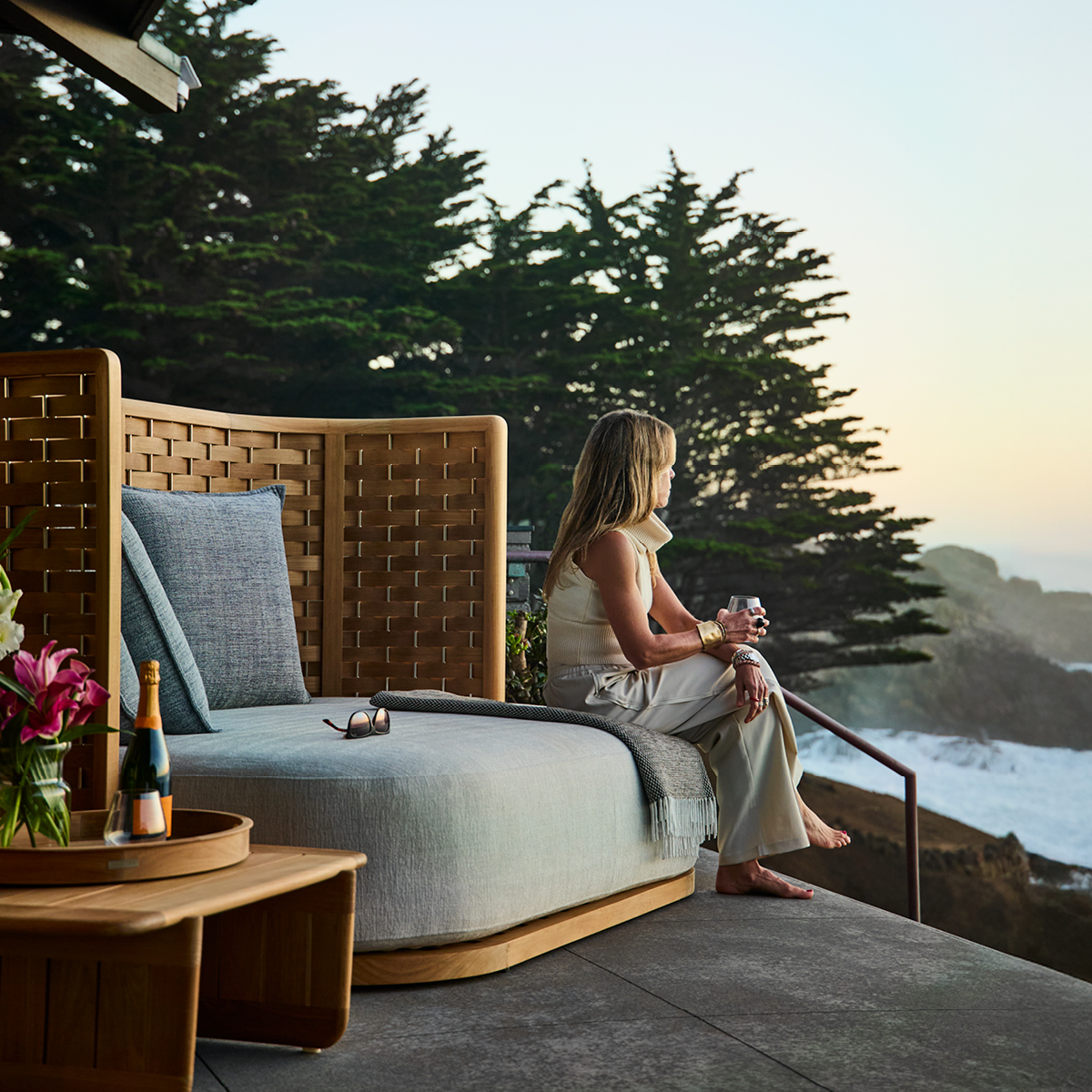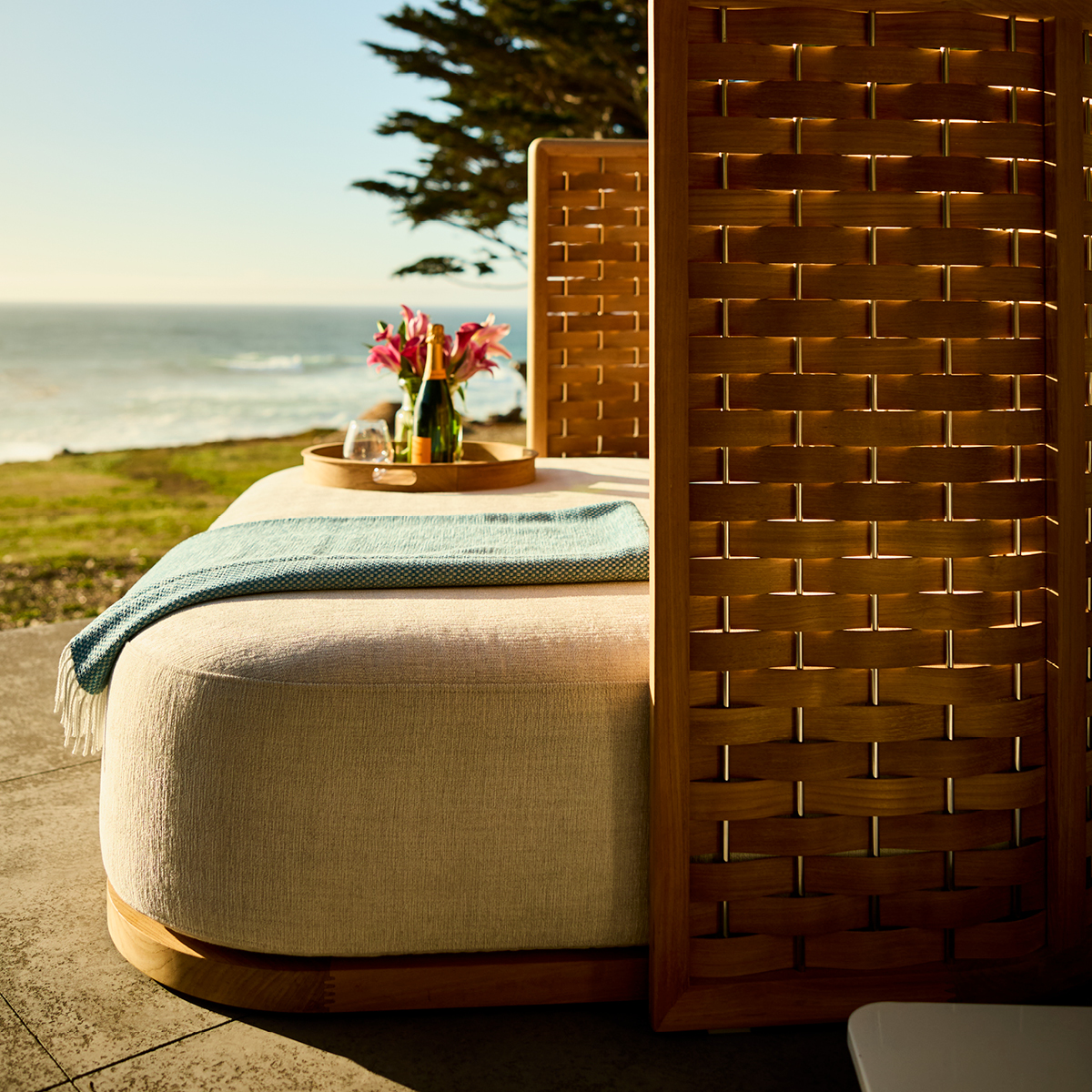 Bold in scale and exquisite in craft, the Arc Daybed is defined by its sculptural silhouette, laminated teak woven between brushed stainless-steel rods in a direct nod to nautical craft and traditional rope work. What sets this piece apart is its remarkable versatility: the curved backrest splits into two independent panels that move to any corner, creating endless configurations for lounging, conversation, or solitude. The Arc Daybed is crafted from our world-renowned teak, available in a broad range of fabrics, making it ideal for luxury hotels, private clubs, yacht decks, and coastal estates where commanding presence and design excellence are essential.