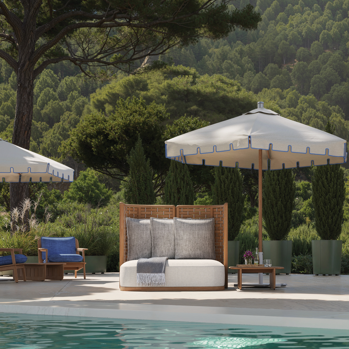 Summit furniture is crafted from plantation-grown teak, a uniquely durable hardwood rich in natural oils and silicates. These natural compounds give teak exceptional resistance to moisture, rot, and insects, making it ideal for outdoor environments.