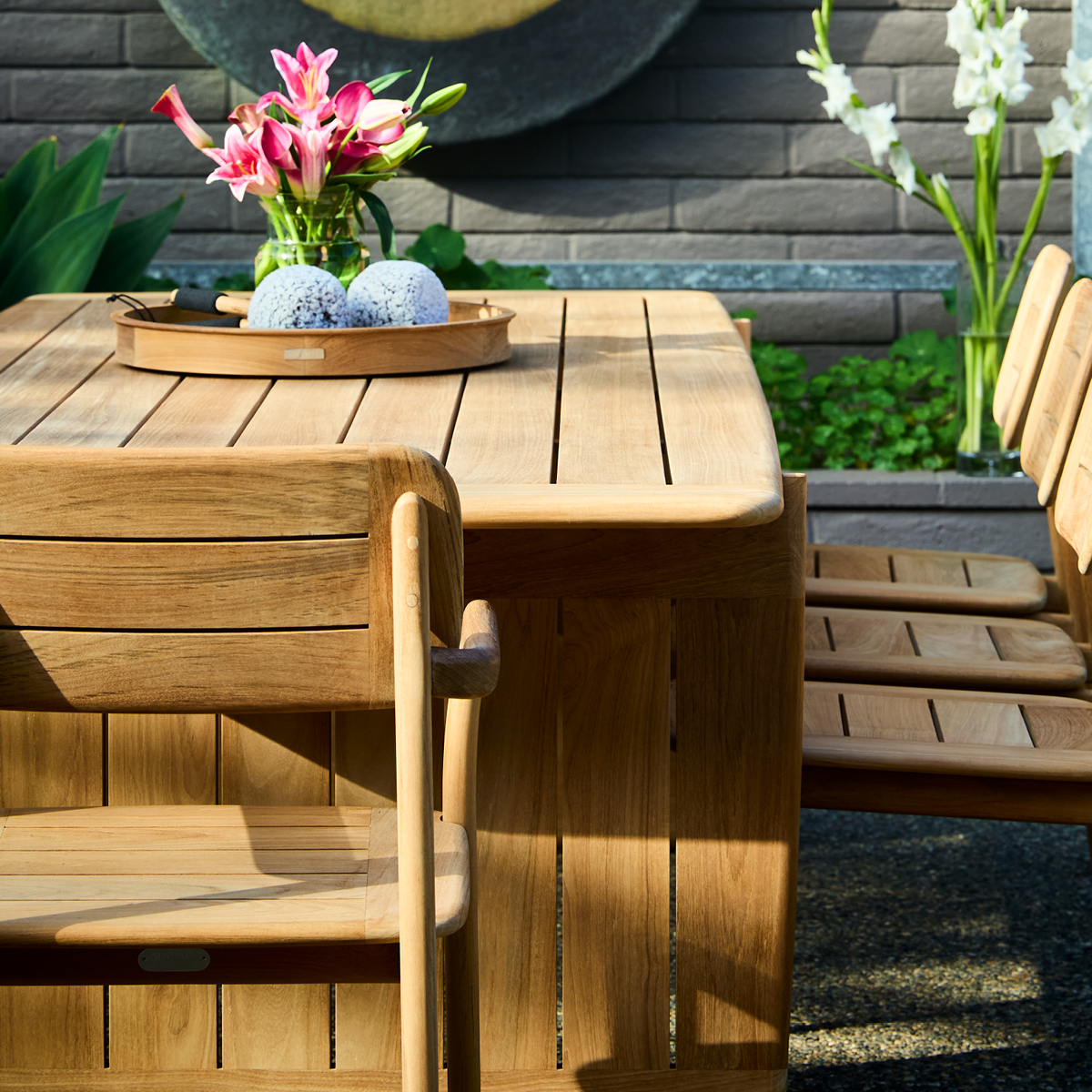 Over time, teak undergoes a graceful transformation from its original warm honey brown color to a silvery grey patina. As teak matures, you may observe slight changes in grain, tone, or surface texture. These variations do not affect performance and are part of teak’s organic evolution.